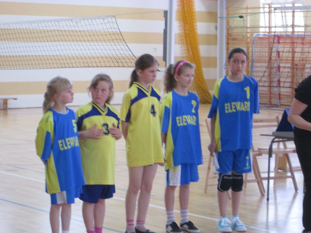 Dziewczęta w grupie wygrały ze SP 3 Olecko 2:1 (2, -21, 9) i przegrały z gospodyniami 0:2 (-17, -11). Na początku meczu nic nie wskazywało, na przegraną, bo prowadziły w pierwszym secie 11:4, ale zacięły się i po końcowym gwizdku ze zwycięstwa 25:17 cieszyły się dziewczęta z SP 7 Olsztyn. Ze względu na małą liczbę dziewcząt w czwartej klasie drugi, młodszy skład Lechowa pojechał bardziej na wycieczkę, niż na zawody, dlatego nie dziwią bardzo słabe wyniki w drugich setach na całym turnieju. Natalia Raplewicz i Kamila Nieciecka są jedynymi dziewczętami w klasie czwartej, dlatego udział w finale „dwójek” jest ogromnym sukcesem. W półfinale trafiły na zwycięzcę grupy B SP 3 Bartoszyce i wygrały dość pewnie 2:1 (16, -5, 10). W meczu finałowym lechowianki ponownie spotkały się z gospodyniami i wspólnie stworzyły wspaniałe widowisko. Podobnie, jak w meczu grupowym prowadziły od początku, ale nie było już przestoju i wygrały pewnie 25:11. Tak samo przegrał kolejnego seta drugi skład. W decydującym o pierwszym miejscu secie Natalia i Kamila prowadziły od początku jednym, dwoma punktami do stanu 14:13 i mały „w górze” piłkę meczową. Po dobrej zagrywce Natalii przeciwniczki oddały piłkę na stronę Lechowa, ale błąd przy wystawie Kamili wykorzystały gospodynie, które zdobyły punkt. Chwilę później ponownie podobny błąd zrobiła wystawiająca i piłkę meczową miały olsztynianki, które po ładnej akcji cieszyły się z tytułu mistrzowskiego. Sukces wielki, choć zabrakło jednej akcji, a puchar najlepszej drużyny w województwie pojechałby do Lechowa. Sędziowie, kibice i trenerzy gratulowali wspaniałej gry Natalce Raplewicz (Lechowo), która po zawodach otrzymała od rozgrywającego AZS Olsztyn Macieja Dobrowolskiego pamiątkową koszulkę i zaproszenie na mecz Plus Ligi mężczyzn.